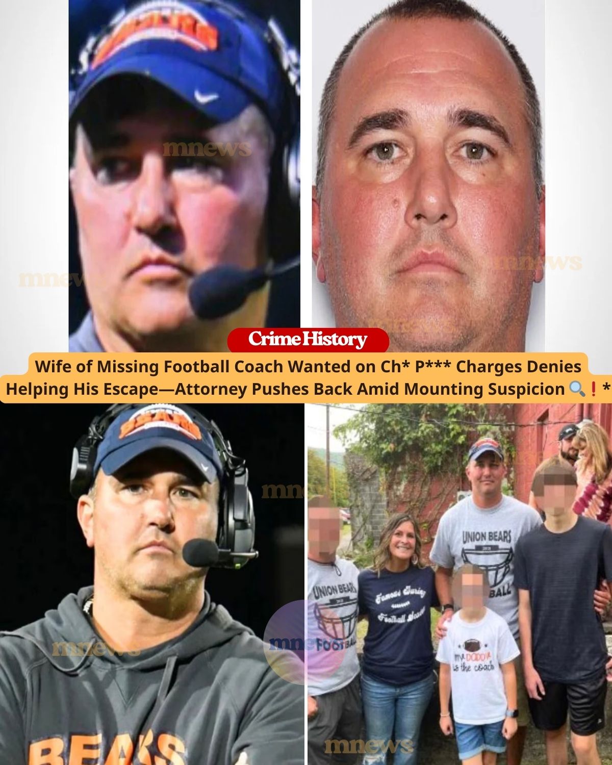 Wife of Missing Football Coach Wanted on Ch* P*** Charges Denies Helping His Escape—Attorney Pushes Back Amid Mounting Suspicion 🔍❗**